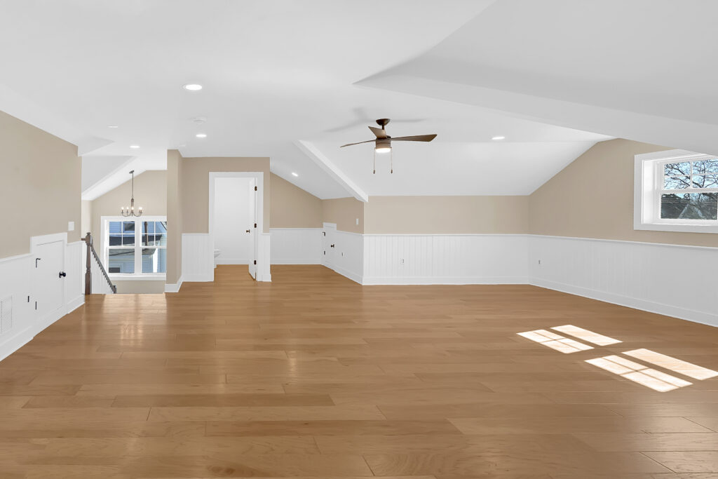 - Large third-floor bonus room with ½ bath, accented with custom wainscoting, and a hookup for a future wet bar