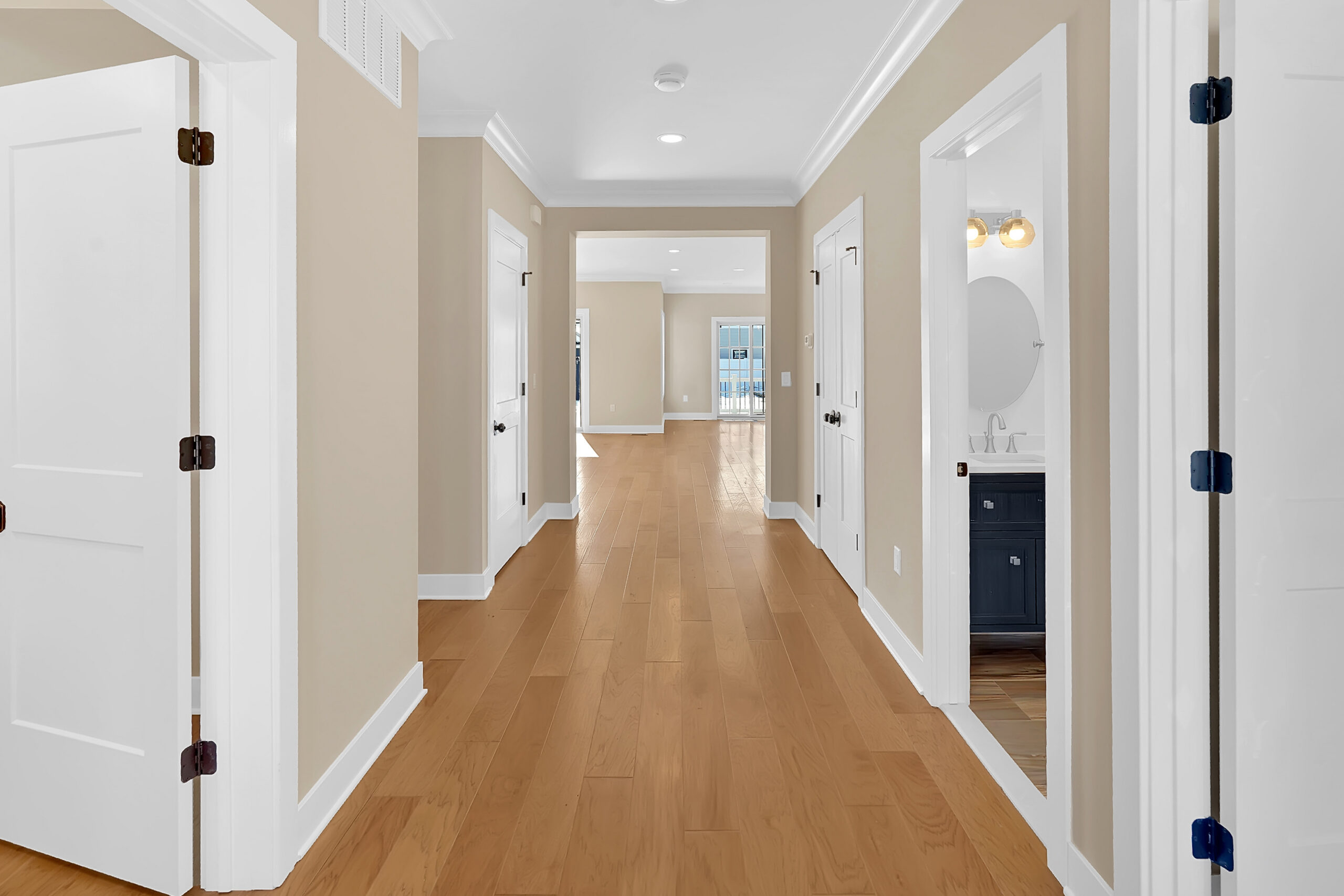 - Outdoor lighting fixtures and recessed lights at front entry.